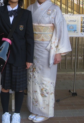 皆さんあまり興味はないかもしれませんが、春に家内が着た着物を紹介します。まずは、中学卒業式